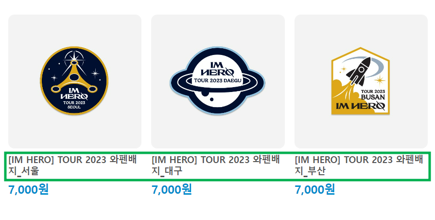 굿즈 이미지 뿐만 아니라, 명칭에 연도와 지역명까지 추가된 것을 보고 디테일하게 신경 쓰는 모습이 너무 고마웠다. 이를 통해서 가수 임영웅의 펜들을 향한 배려심은 정말 한결같다고 생각된다.